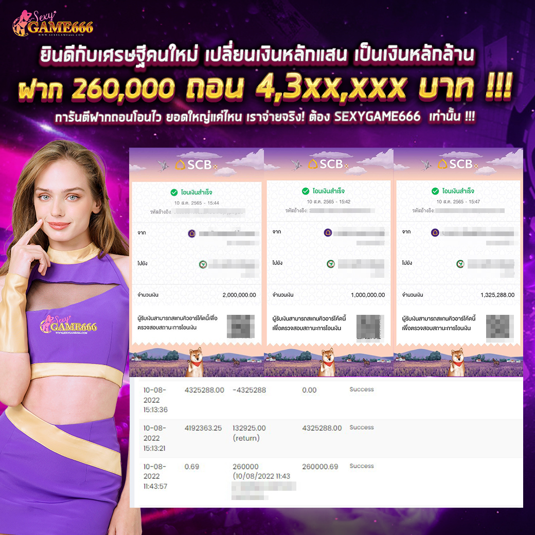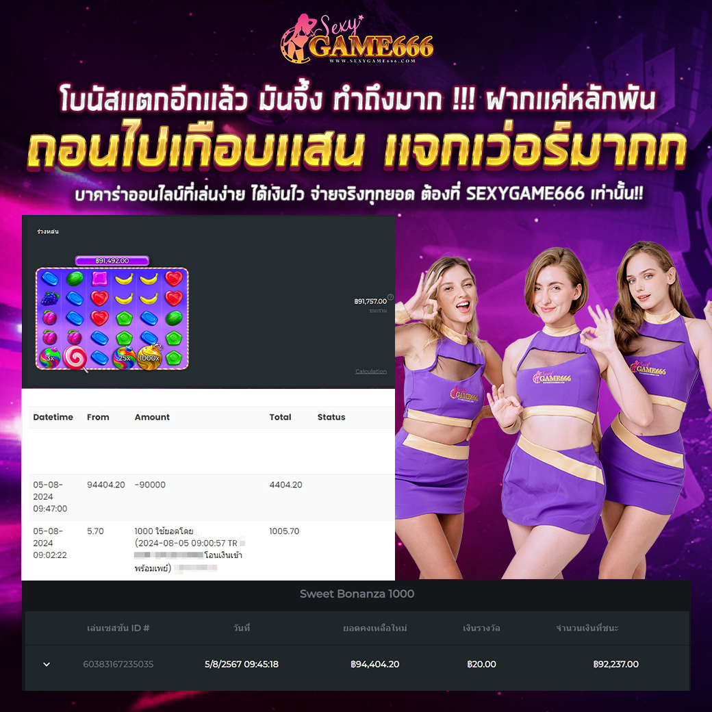 เซ็กซี่บาคาร่า SEXYGAME666.COM บาคาร่า คาสิโนออนไลน์รายใหญ่ที่สุด ฝาก-ถอนออโต้ พนันออนไลน์ อันดับหนึ่ง ให้บริการ คาสิโนออนไลน์ เราให้บริการด้านการเดิมพันแบบครบวงจรตลอด 24ชม.